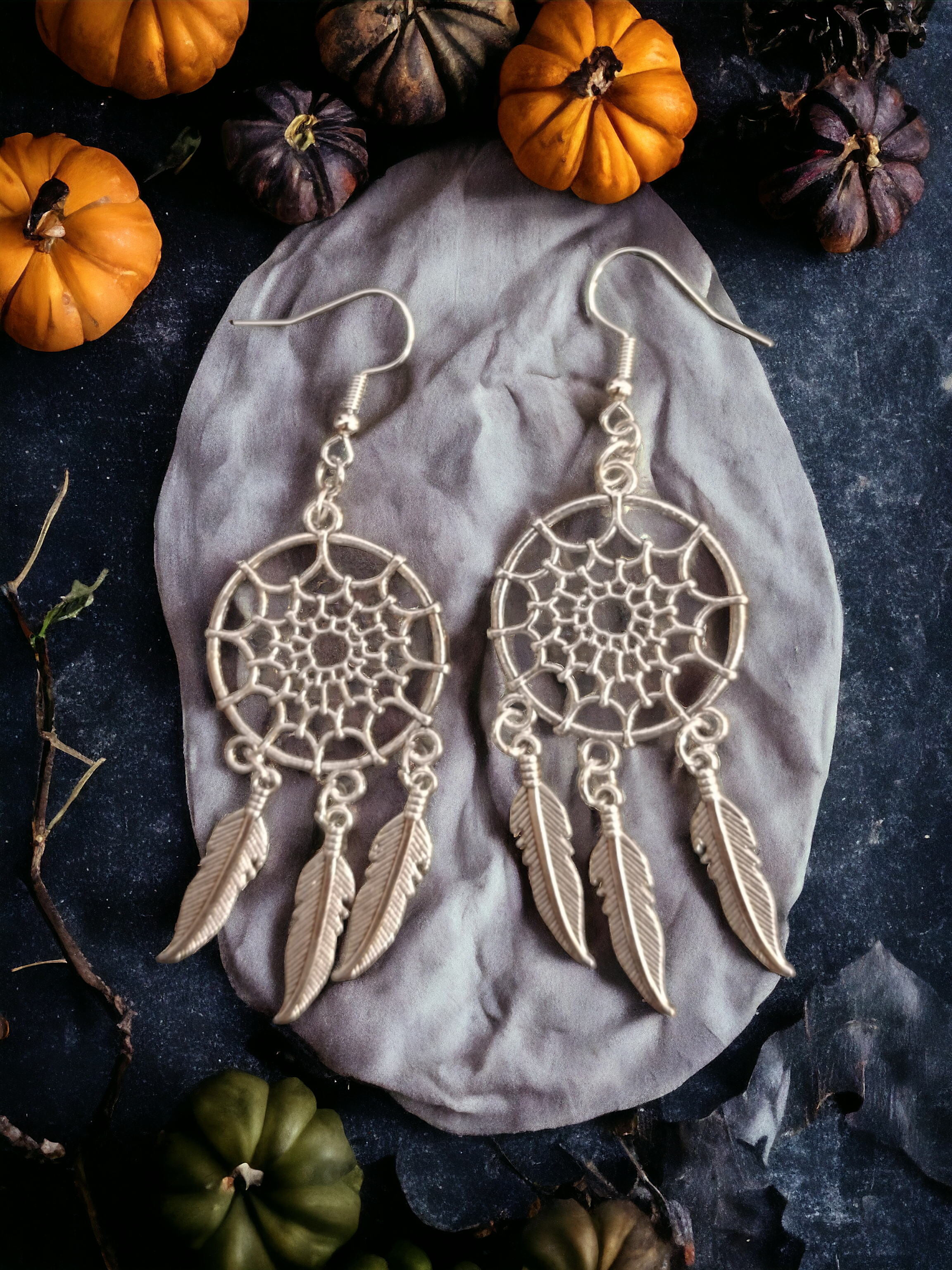 Paires de boucles d’oreilles avec pendentif en forme de piège à rêves en métal.