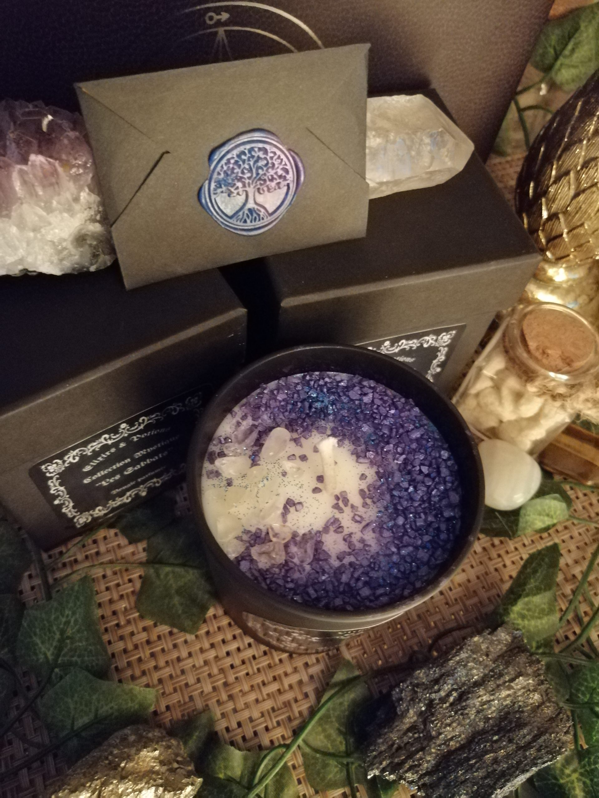 Sur le dessus des bougies, vous verrez de petits Cristaux de Roche qui seront à récupérer à votre guise. je vous conseille cependant de les extraire dès la première fonte afin de ne pas risquer de les détériorer avec la chaleur de la flamme.